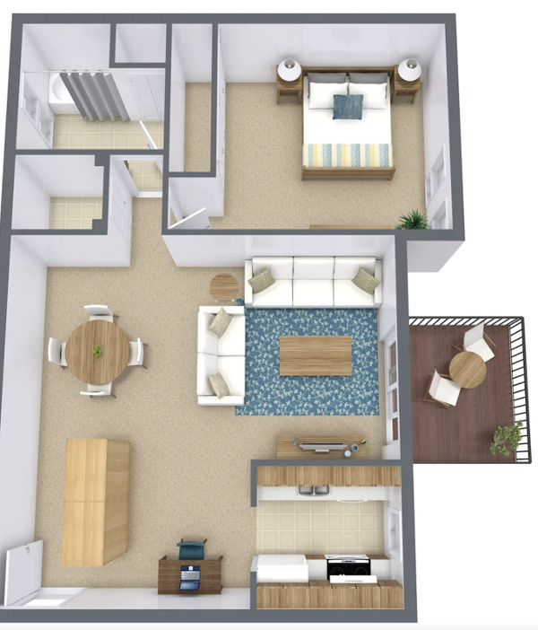 Fully Furnished apartment with TV, Sofa, Bed, Cookware, Air Conditioning, Dishwasher, Extra Storage, High Ceilings, Large Closets, Microwave, Patio/Balcony. Electricity Included.