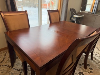 Beautiful dining table set with 6 matching chairs, perfect for family meals or entertaining guests. Solid and sturdy construction with a classic design that fits well in any dining space. Seats six comfortably. Condition: ? Very good condition ? Clean and well-maintained ? No major scratches or damage Details: Includes 1 dining table + 6 chairs 2 bar chair free with it Seats 6 people comfortably Smoke-free and pet-free home