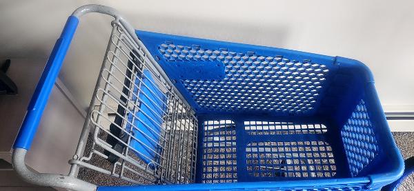Standard size blue color shopping cart for multipurpose usage. Immediate move out sale. Size : W X L X H - 22×38×41"