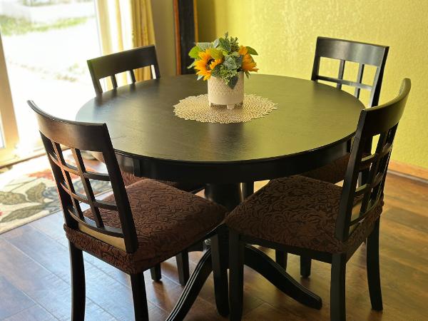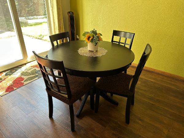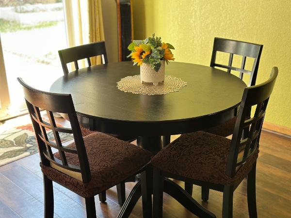 Round table + 4 chairs. Good as new. Bought from Wayfair.