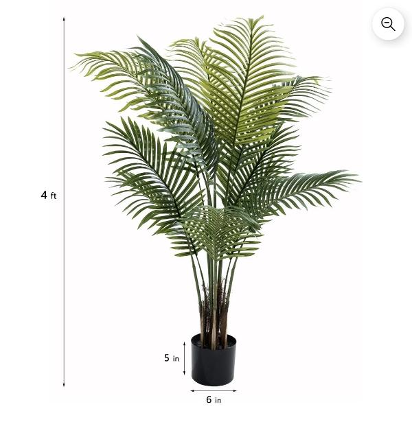 4ft fake palm tree for home/ office decor. Green color and pot included.
